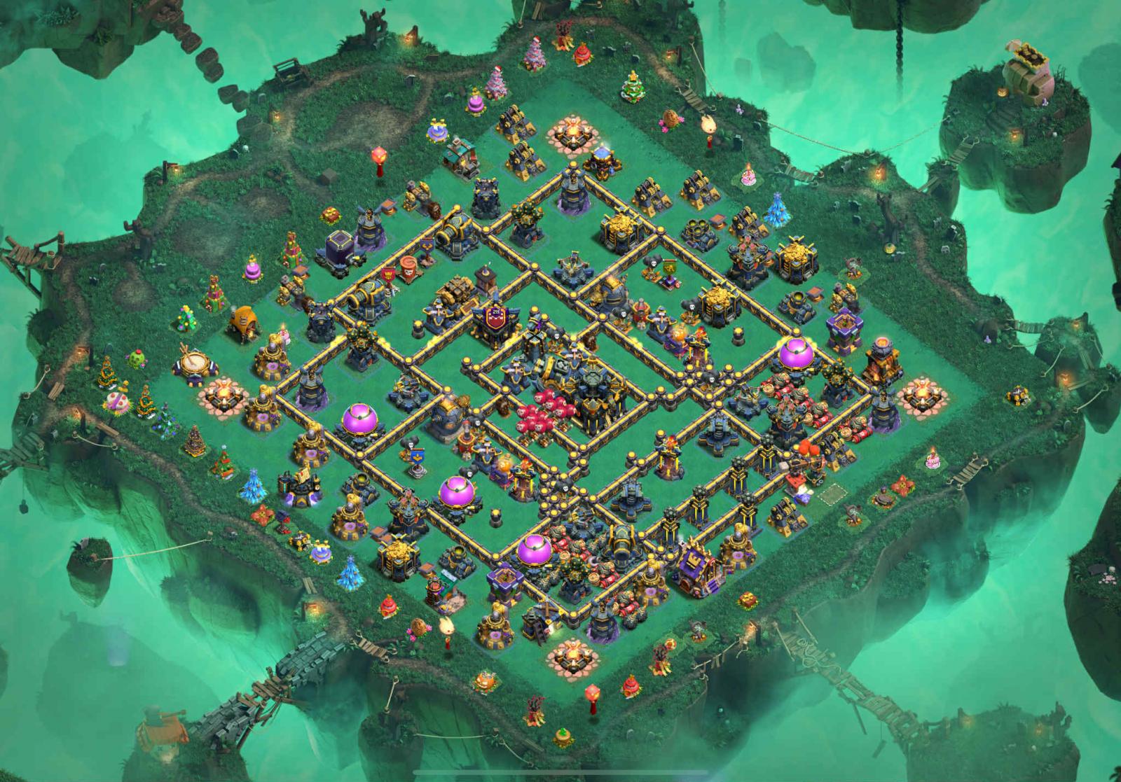 Nó có đầy đủ các công trình phòng thủ mới xưởng chế tạo, bom, mìn bay, nhà linh thú pets house, pháo đài đá và tháp thần chú. Nó chống 3 sao rất tốt, các bạn có thể chỉnh inferno tháp hỏa ngục nhiều tia để tối ưu hóa khả năng phòng thủ nhé. Việc bố trí những bom bay ở vị trí xung quanh inferno nhiều tia khiến cho việc đi super queen và combo lính bay gặp rất nhiều khó khăn. khu vực trung tâm mẫu base tập trung rất nhiều bom bẫy, công trình phòng thủ máy bắn đá ở đấy hỗ trợ rất tốt.